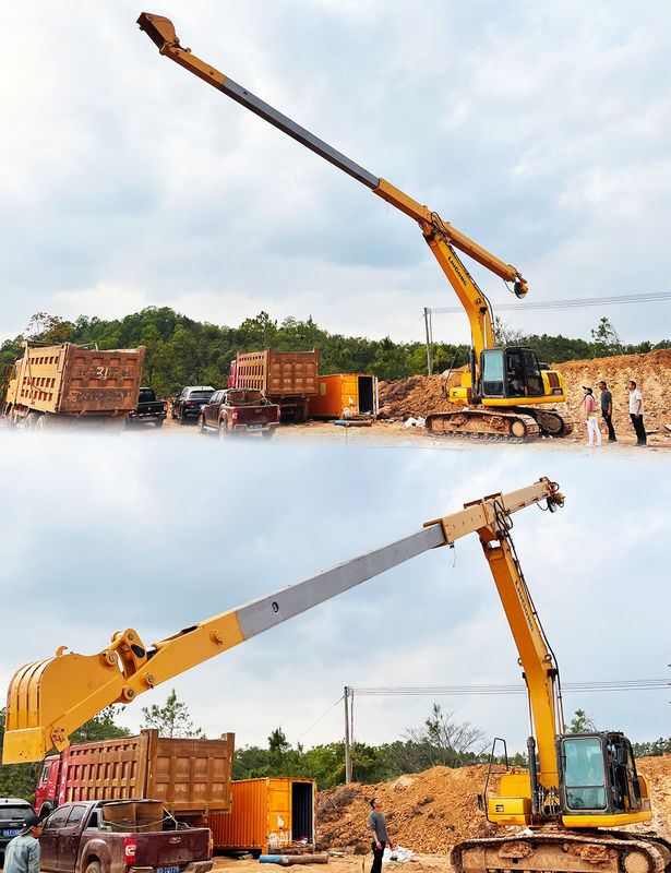 Телескопическая рука экскаватора представляет собой специализированную систему расширения, состоящую из жесткой основы, скользящего механизма, стальной веревки и гидравлического привода для контролируемого движения.Регулируемые скользящие секции обеспечивают расширенный рабочий диапазон и более глубокую мощность раскопокПри наличии ведра он позволяет эффективно добывать почву, песок и уголь в условиях глубоких раскопок.